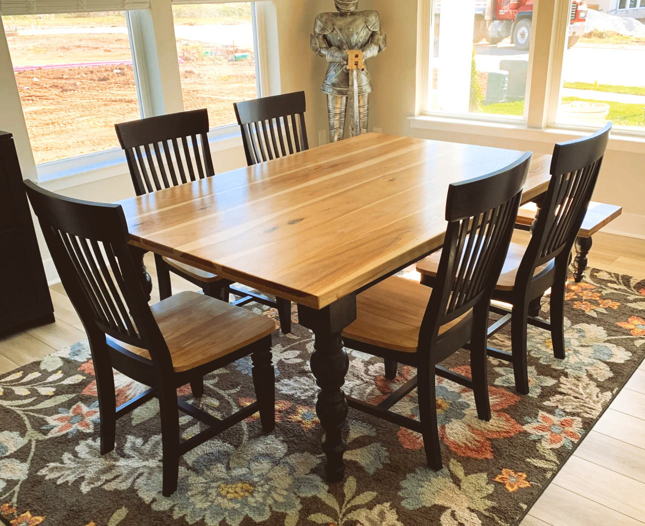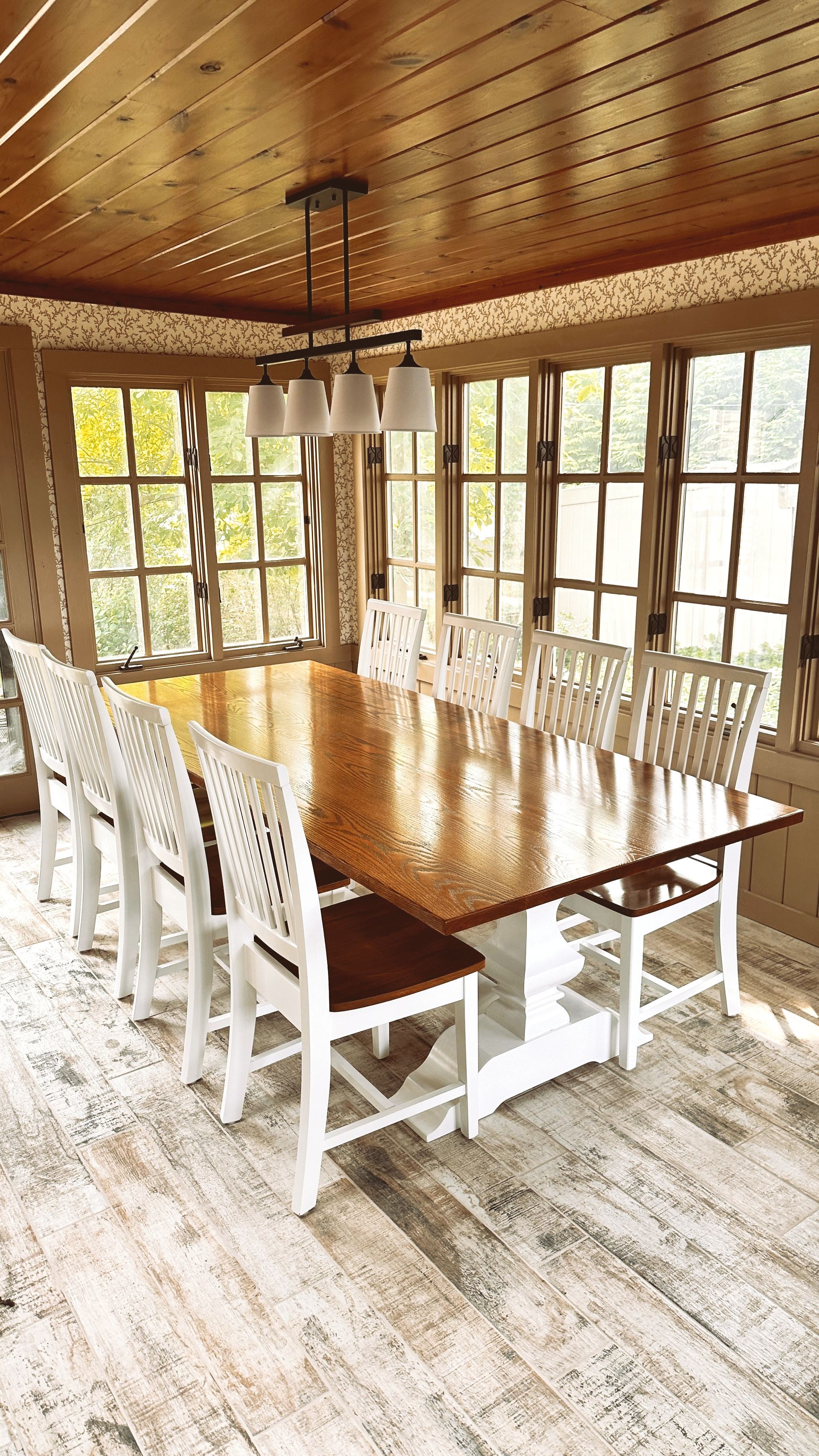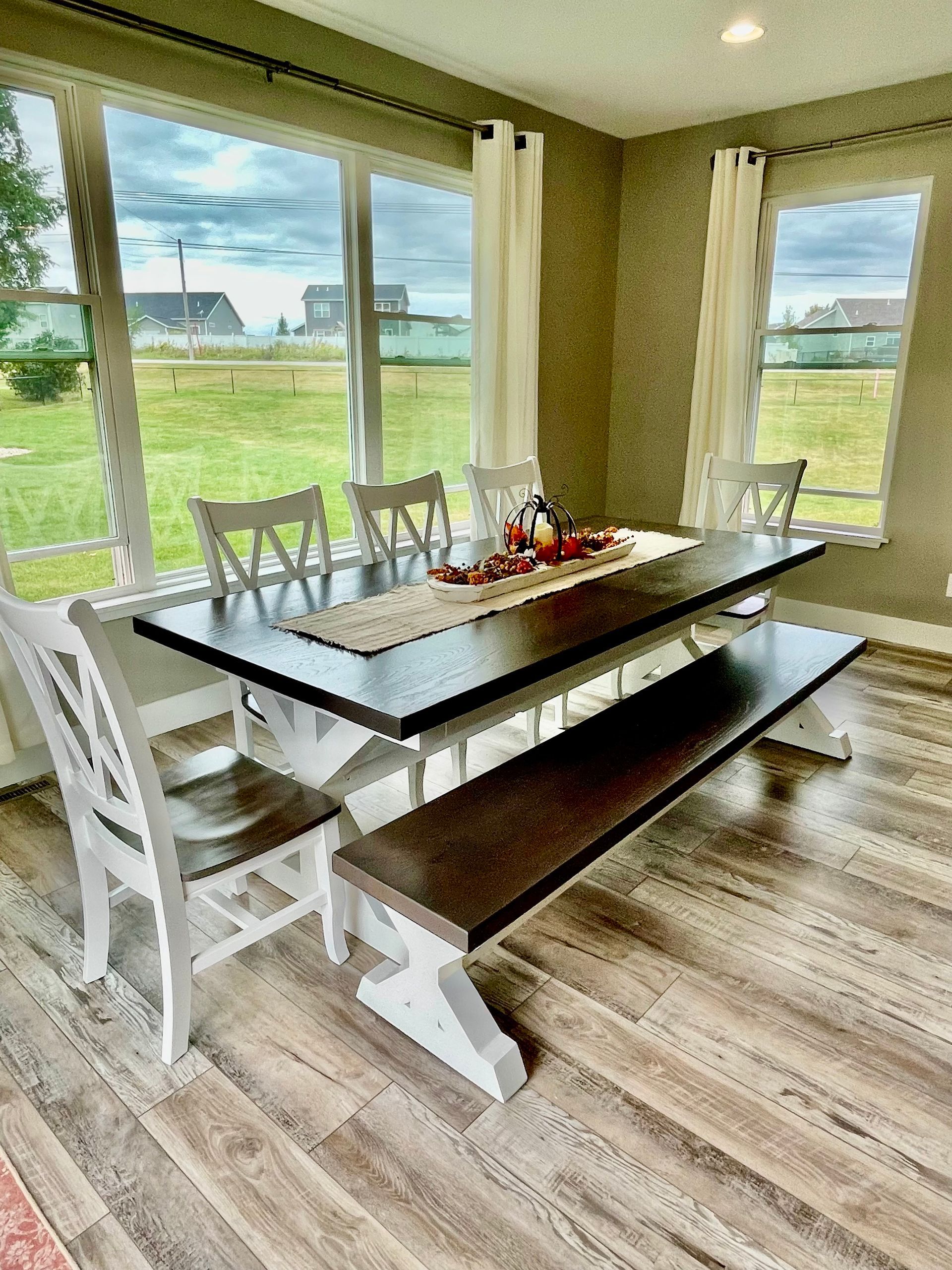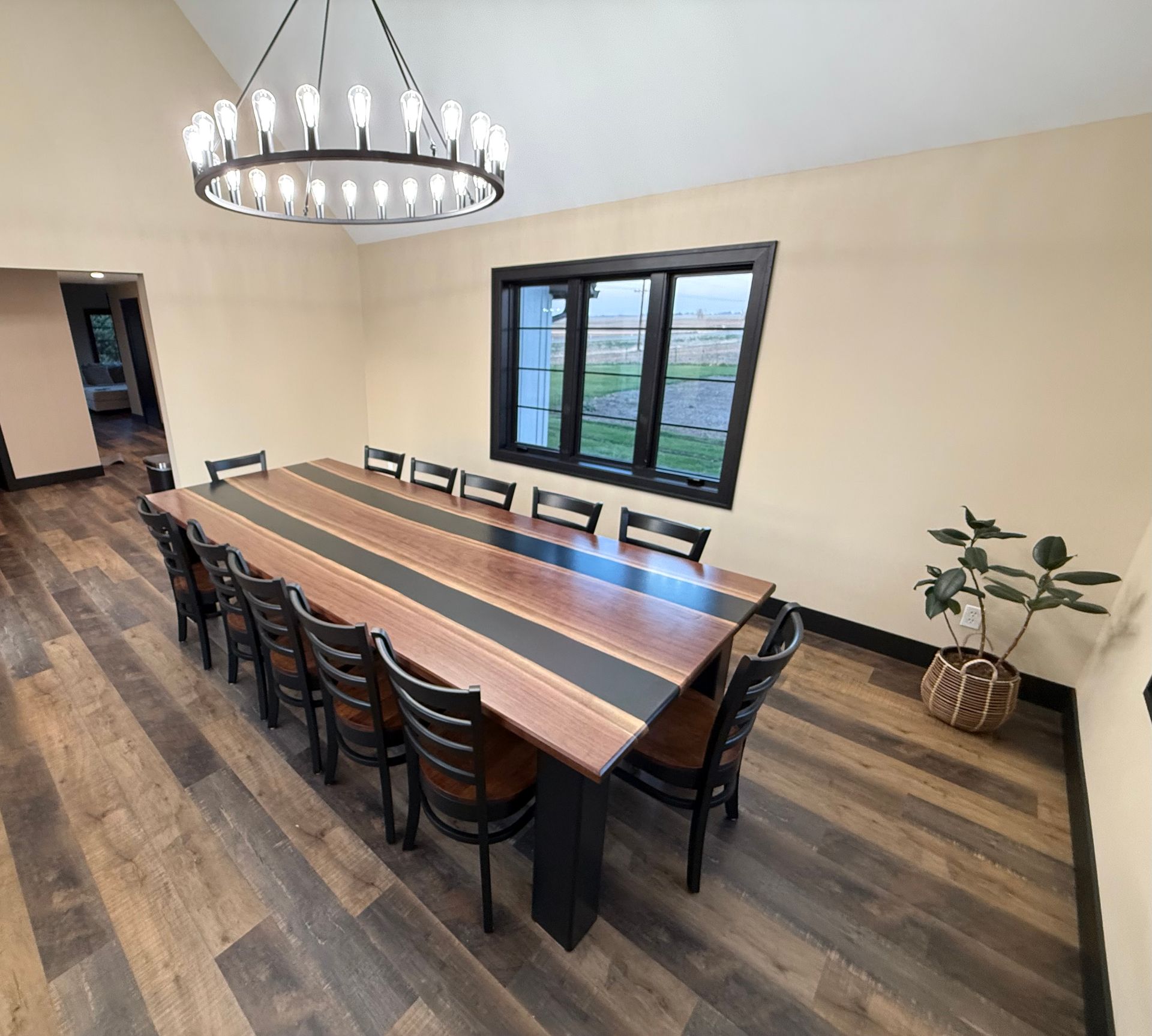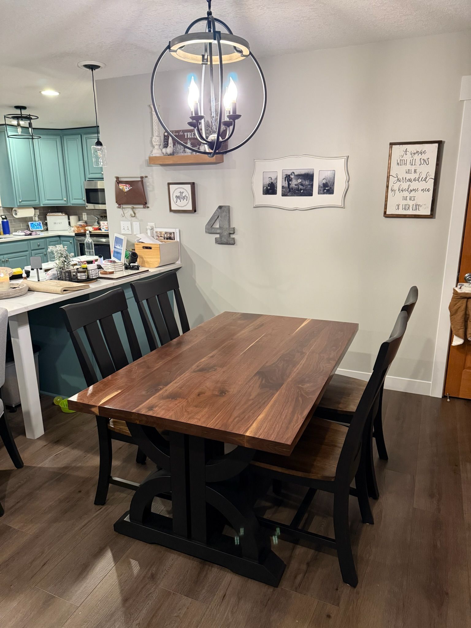 Table pictured is a walnut and black resin table. Options with these tables are endless.