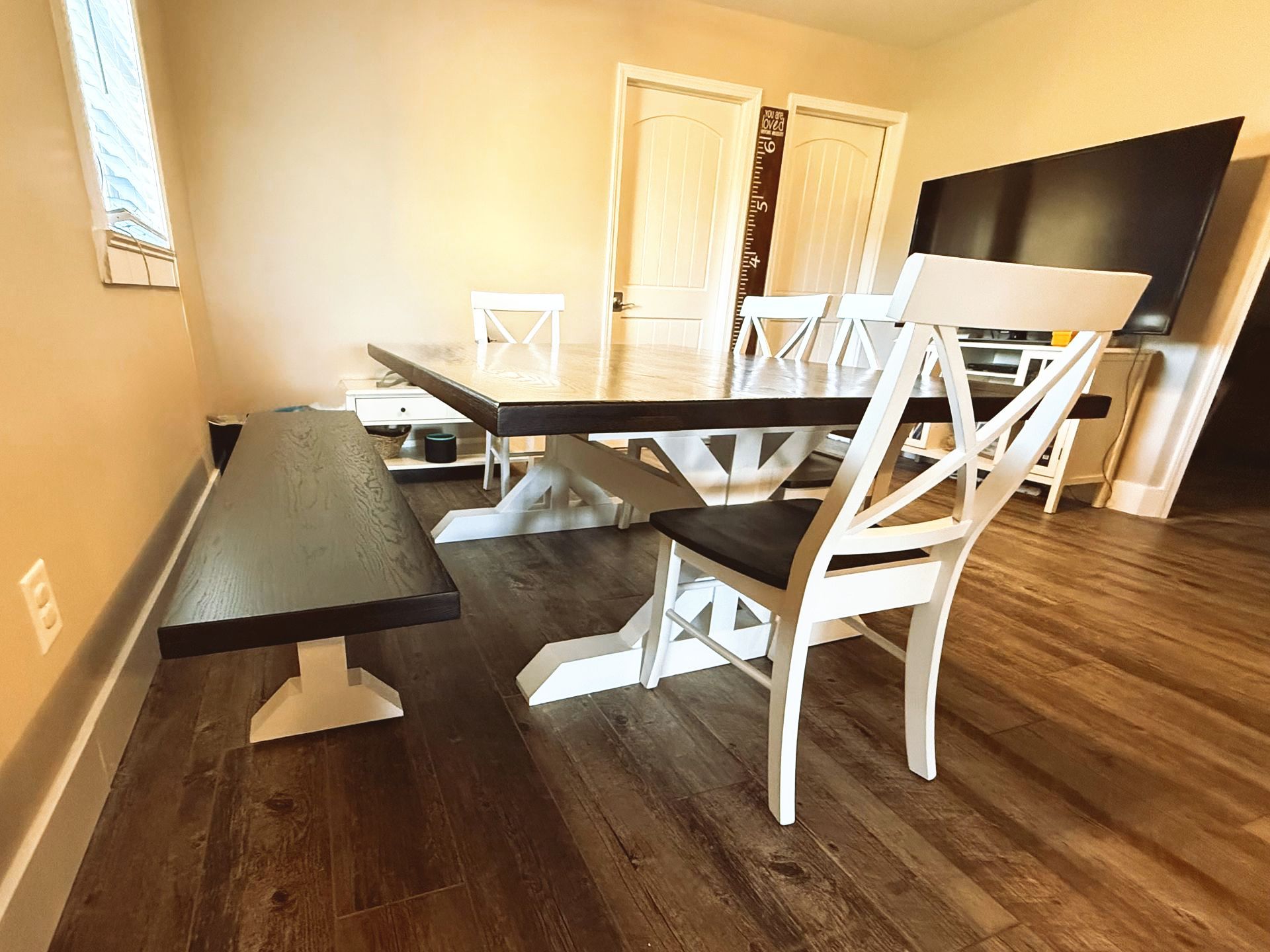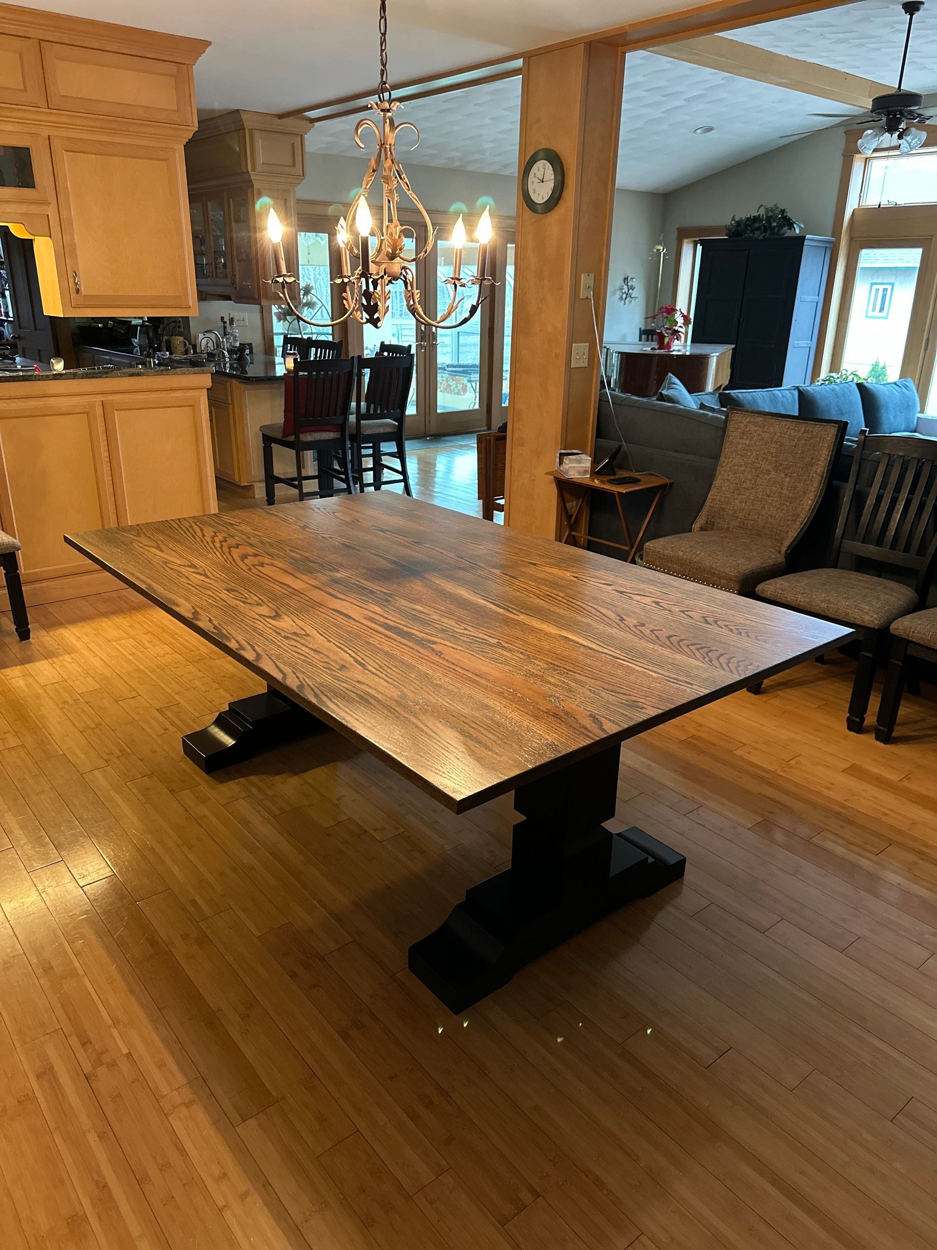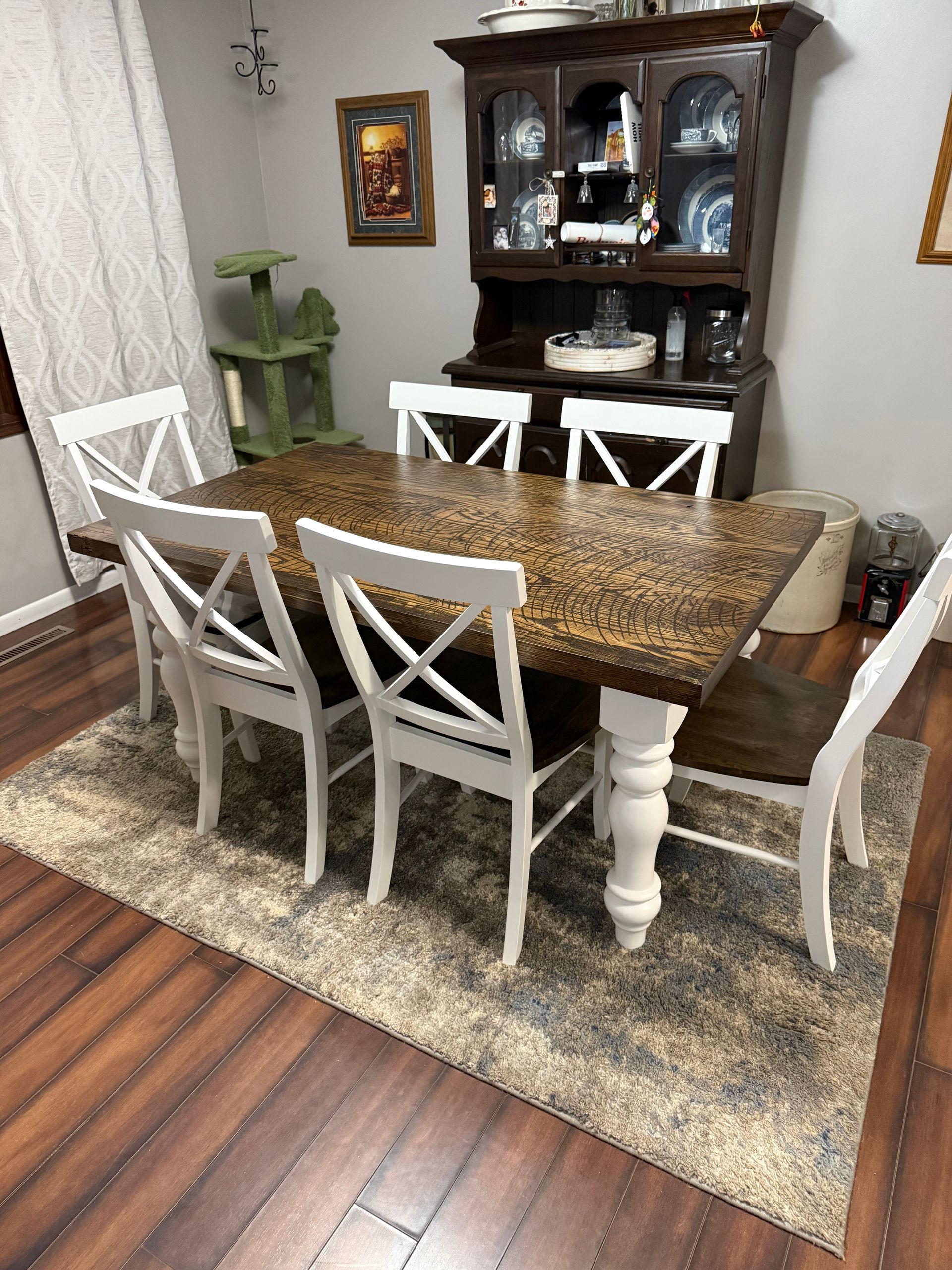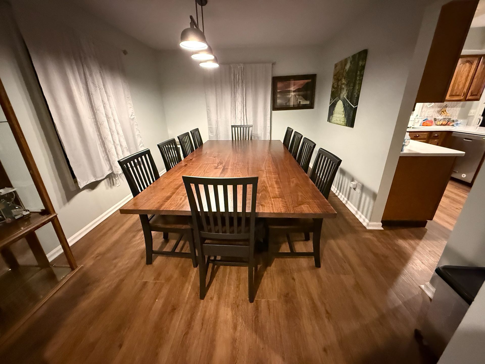 Table pictured is a walnut and black resin table. Options with these tables are endless.