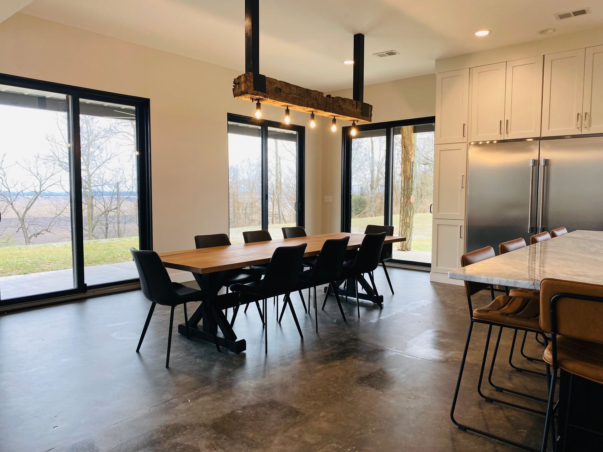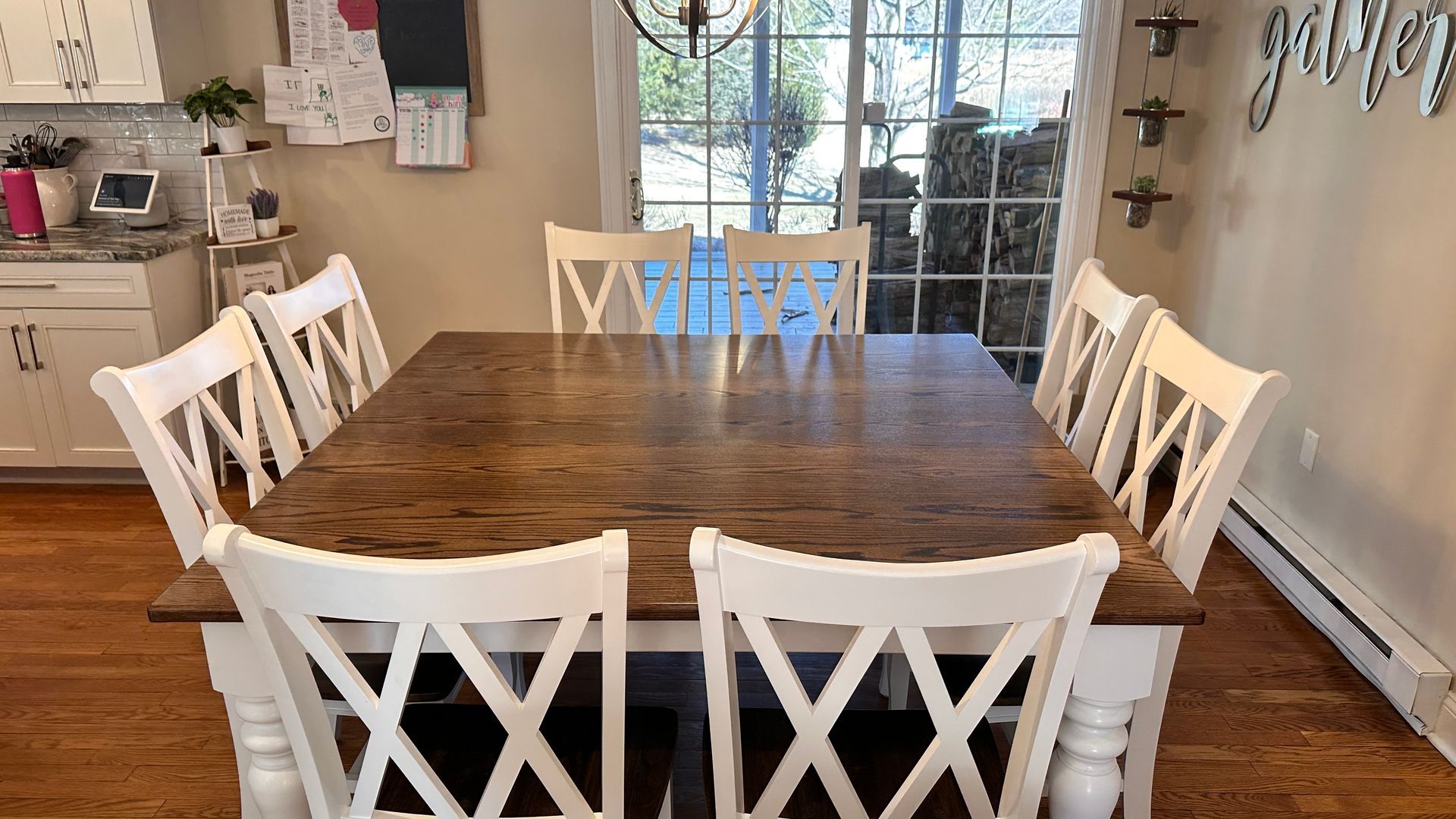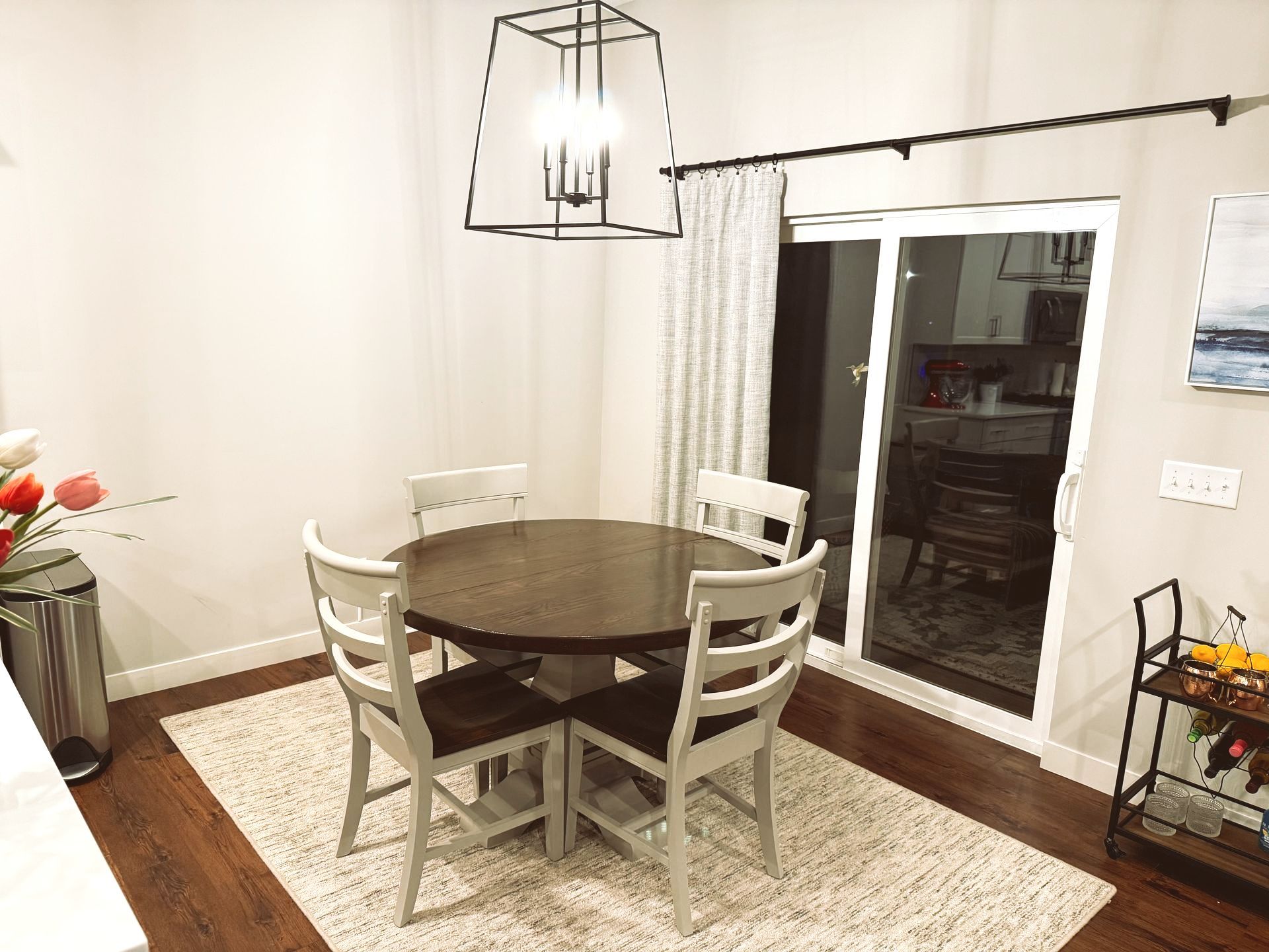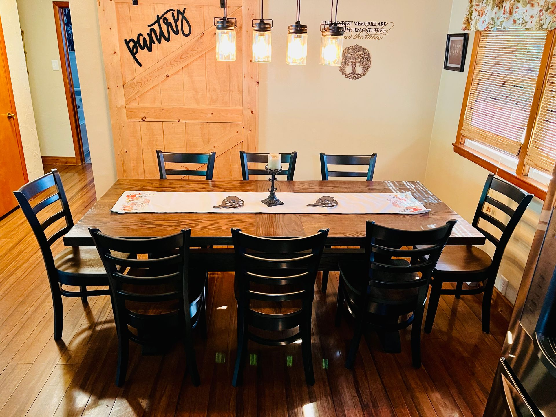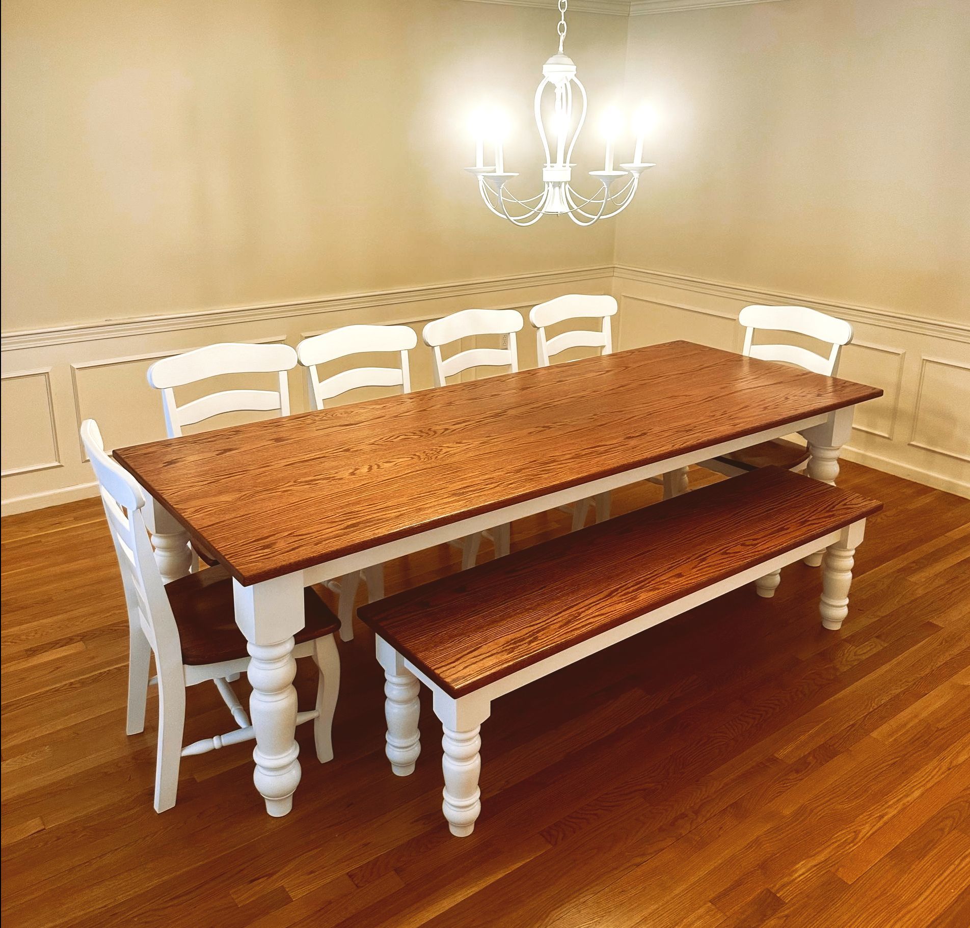 Table pictured is a walnut and black resin table. Options with these tables are endless.